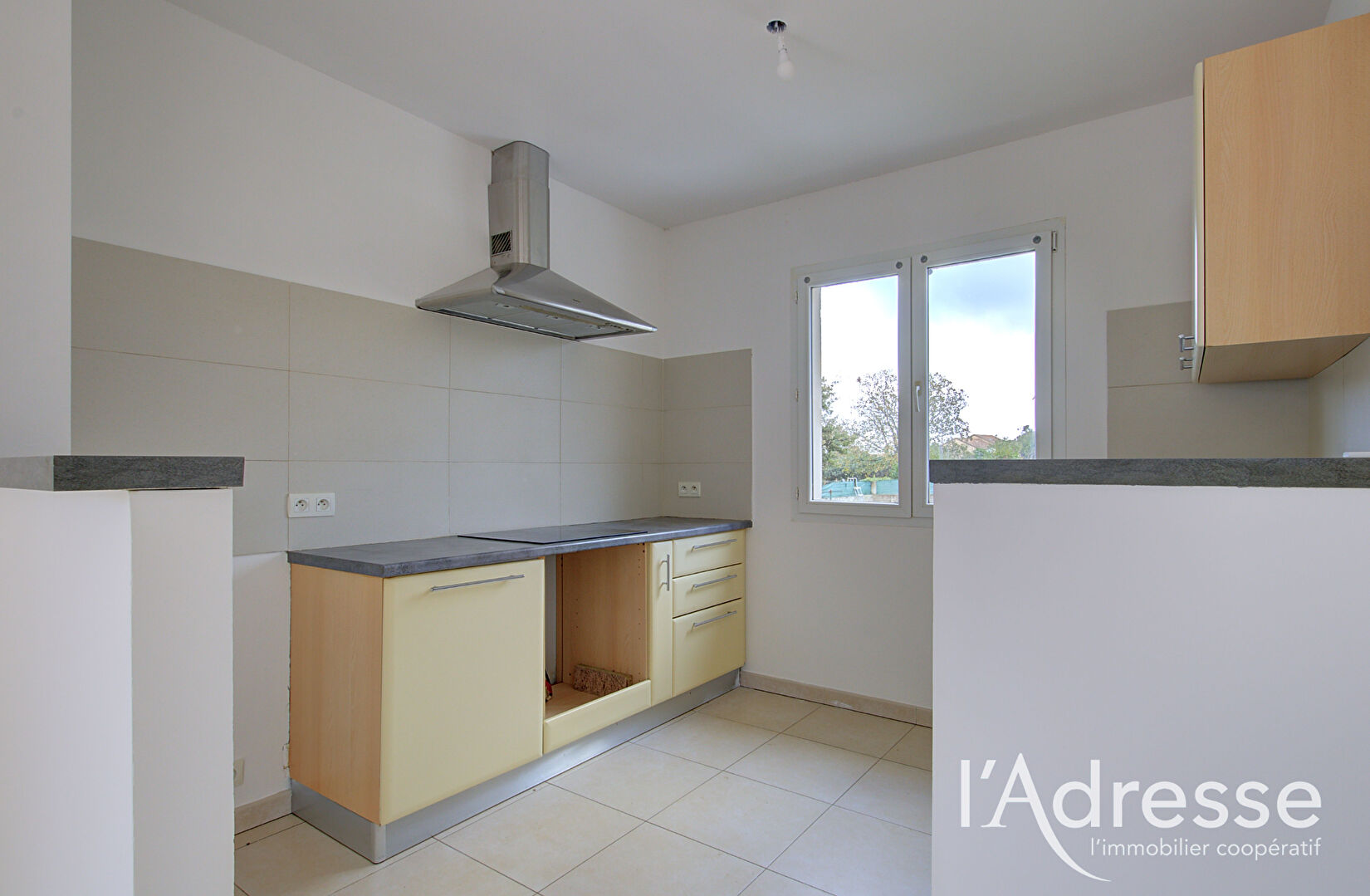Climatisation réversible, cuisine aménagée et équipée (plaque, four, hotte, lave linge)