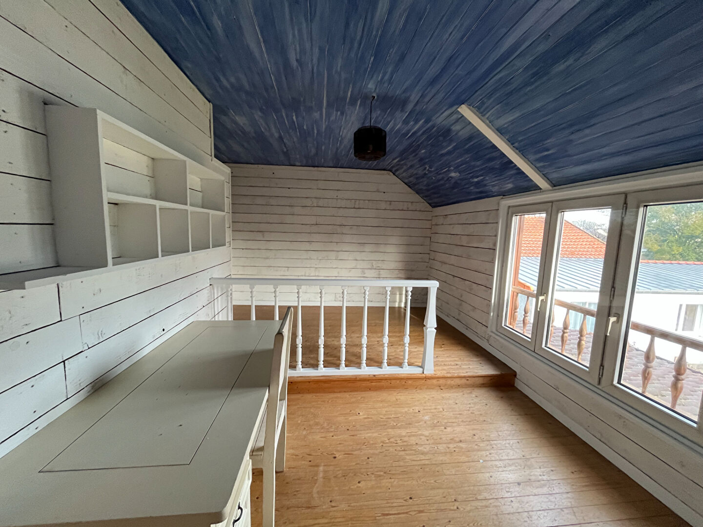 À l'étage, vous trouverez un grand palier, 3 chambres, un bureau, ainsi qu'un WC indépendant.