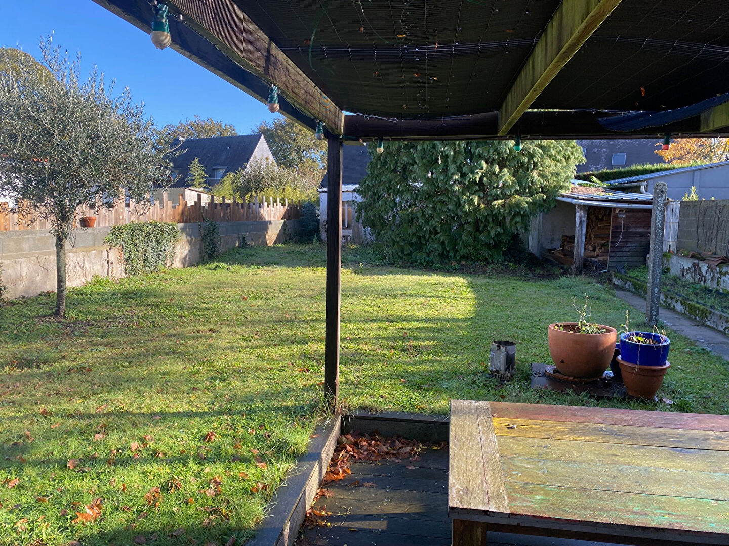 À l'extérieur, la maison dispose d'un jardin privatif, d'une terrasse, et d'une dépendance située au fond du jardin, idéale pour du rangement, un atelier ou un espace complémentaire selon vos besoins