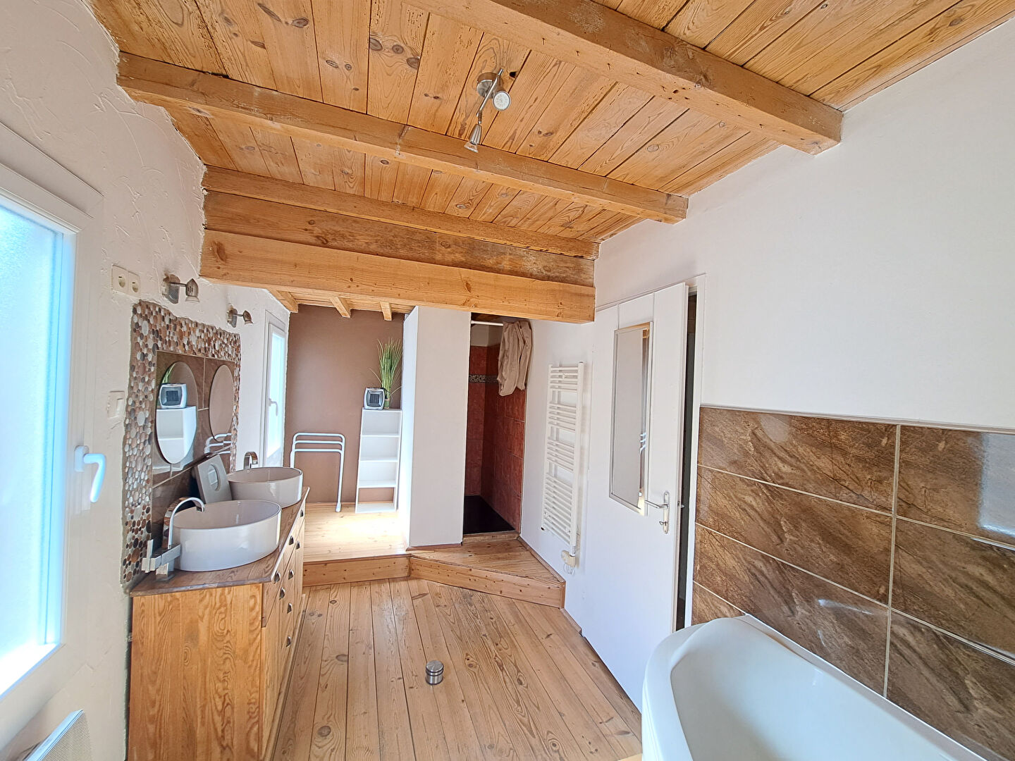 1er étage, 2 chambres dont une avec dressing, une salle de bain avec douche, baignoire d'angle et wc.