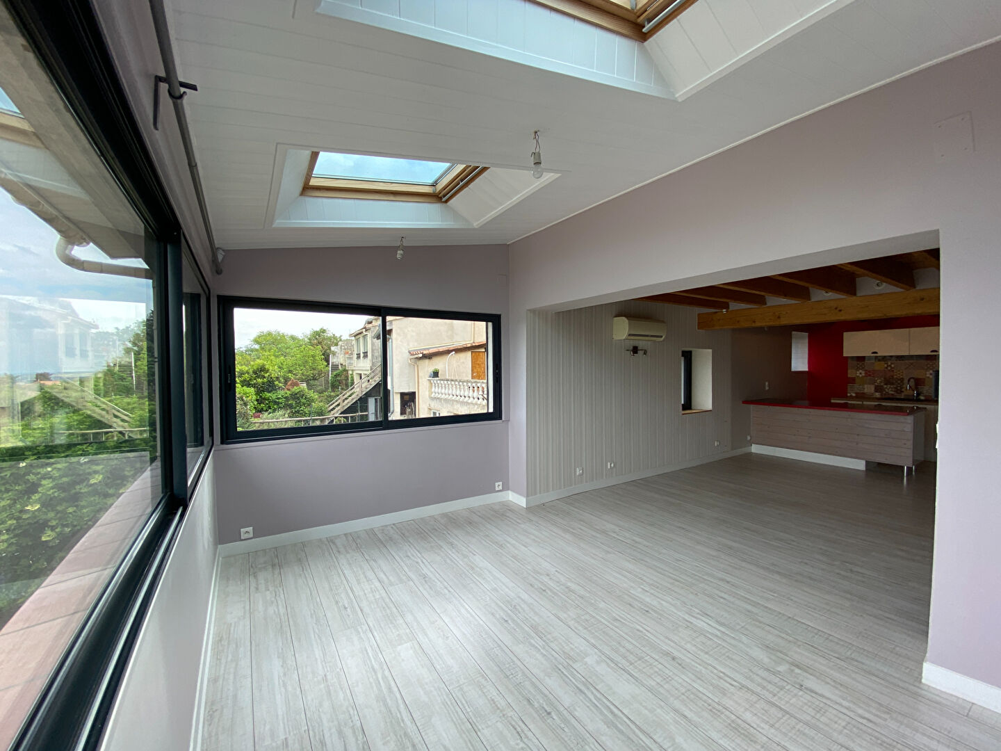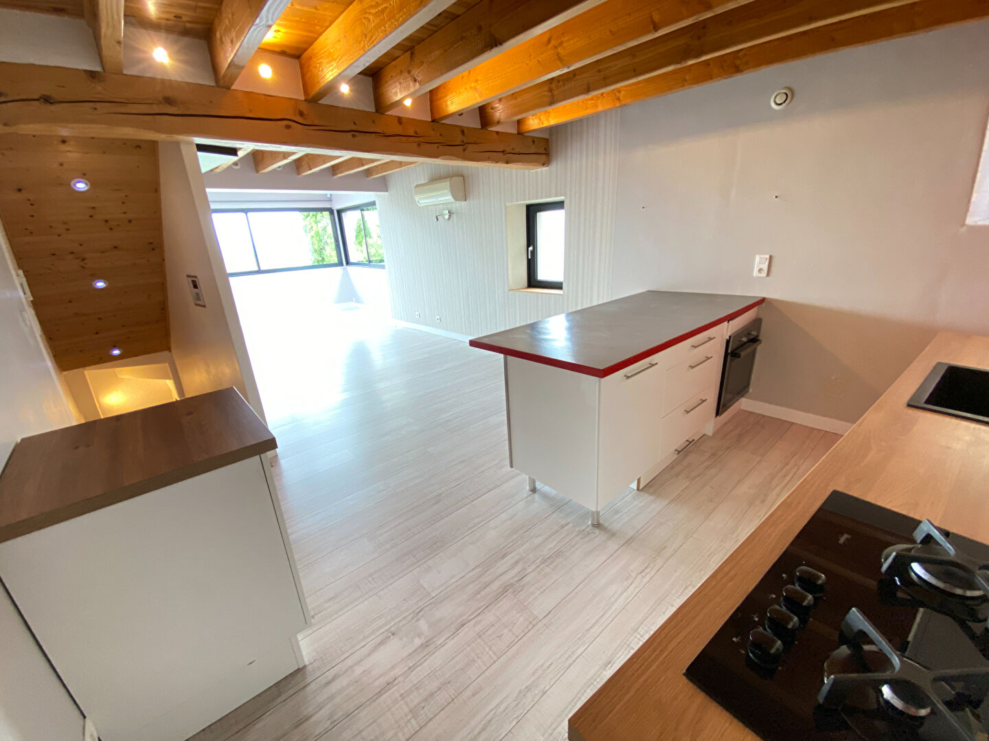 Au 1er une cuisine aménagée et semie équipée ouverte sur la pièce de vie avec une vue à couper le souffle. Sous les toits, une autre chambre avec salle de douches/WC privative et avec accès bureau !