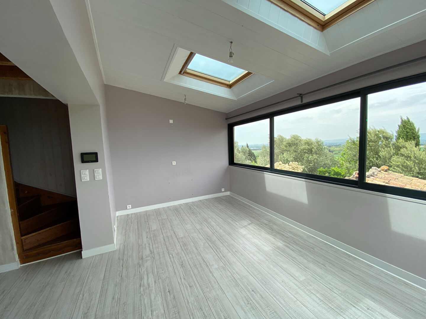 Idéal jeune couple, vue dominante sur la Montagne noire, maison sur 3 niveaux comprenant entrée avec placard, salle de douches/wc, 1 chambre avec placard.