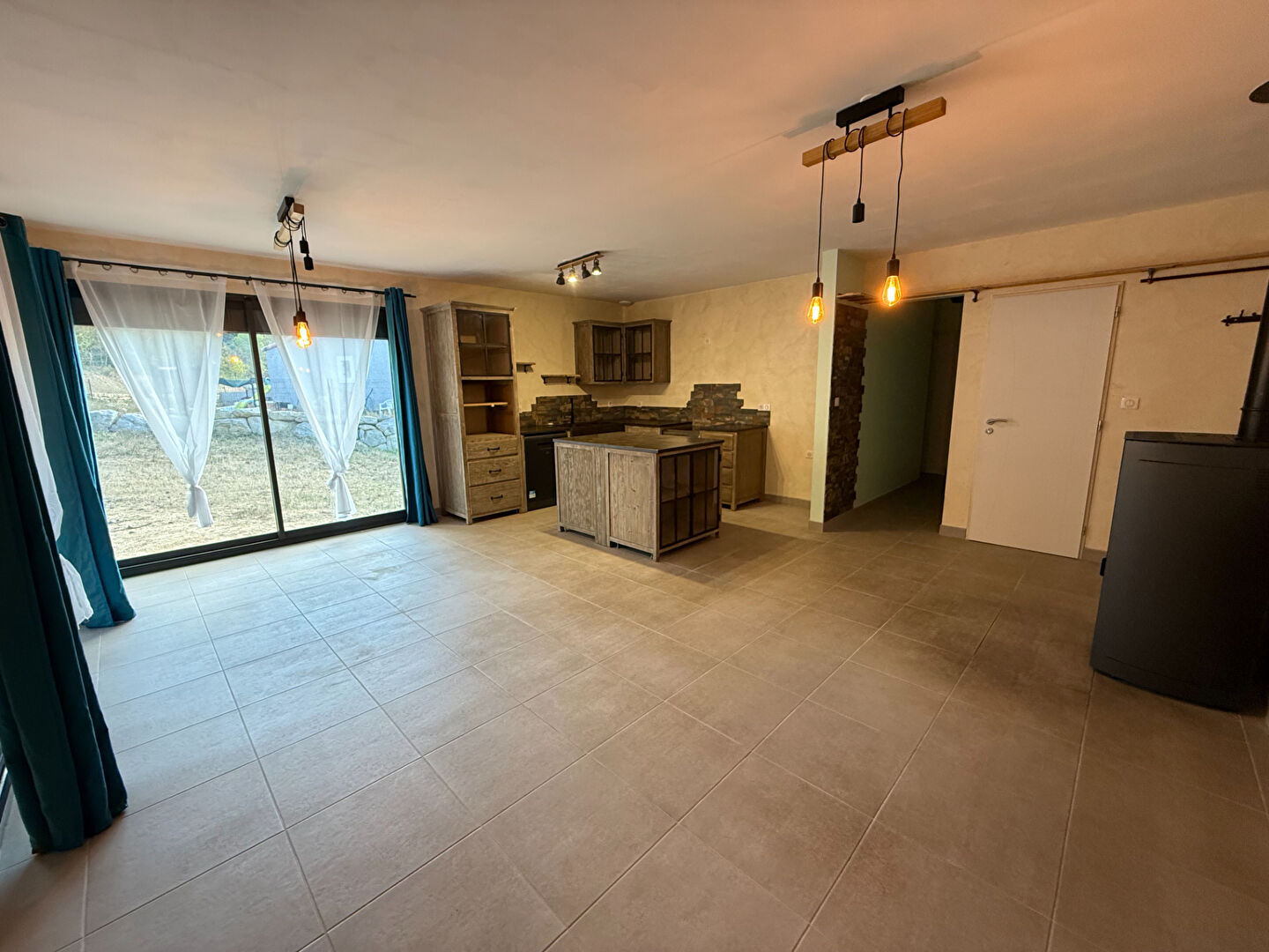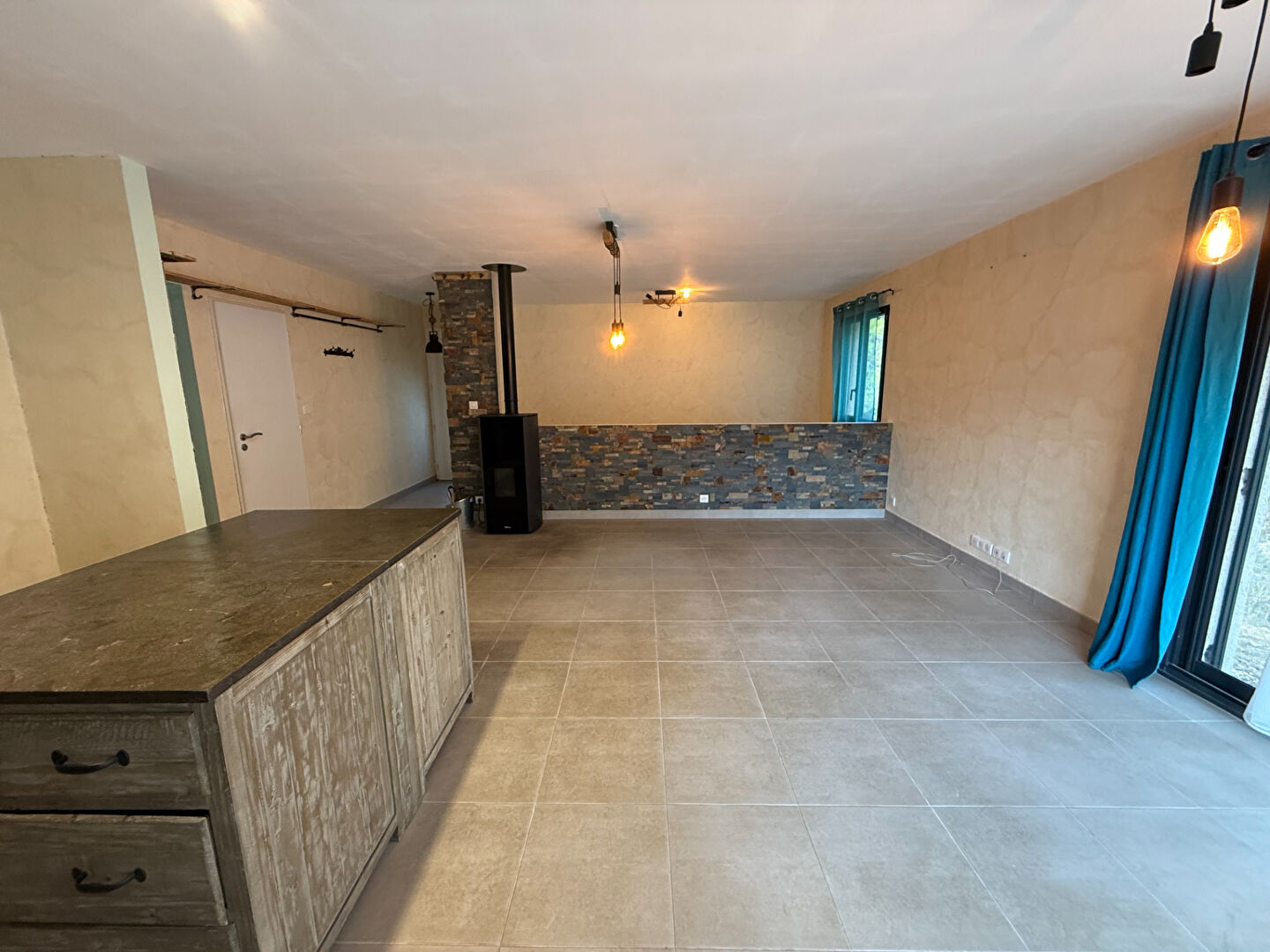 A l'étage, une belle pièce de vie ouverte avec un coin bureau ou salle de jeux enfants, une cuisine meublée.