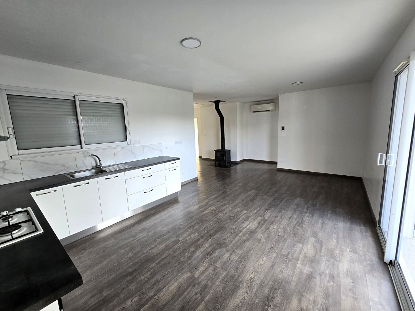 Découvrez cette maison contemporaine de plain pied, construite en 2018 et agrandie en 2023, offrant environ 77 m² de confort moderne et de fonctionnalité. Dès l'entrée, vous serez séduit par une pièce de vie spacieuse et lumineuse de 32 m² ouverte sur une cuisine aménagée et équipée et offrant un accès direct à une terrasse plein sud.