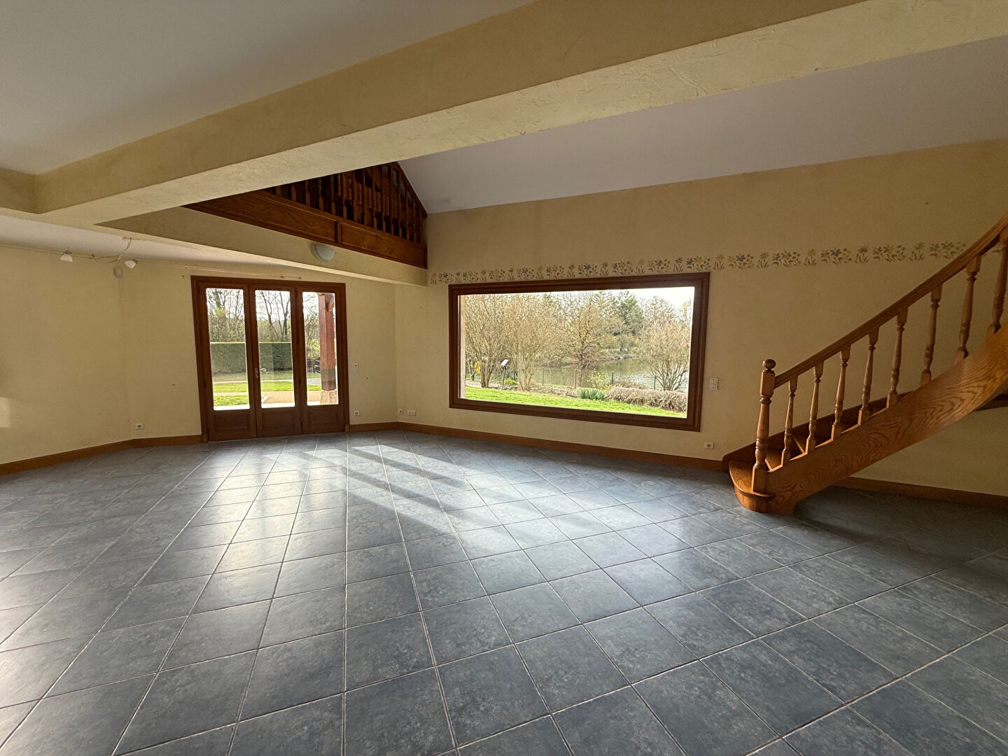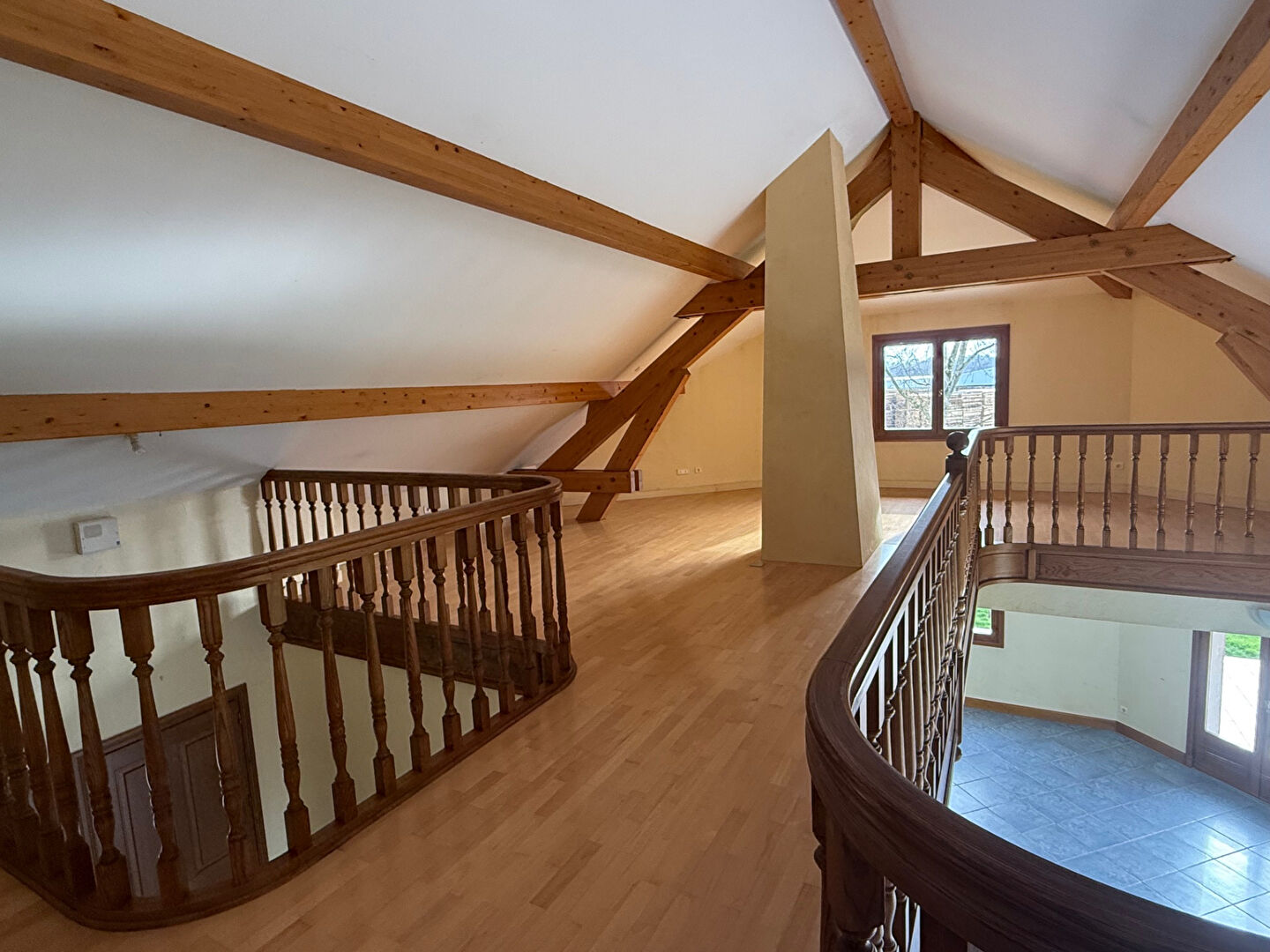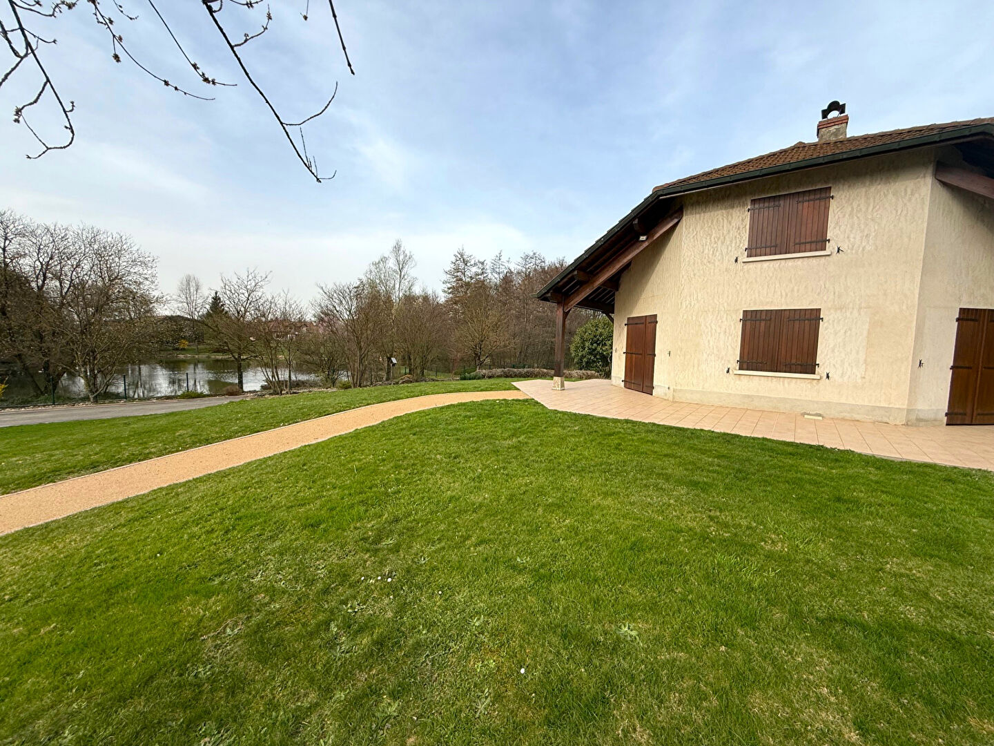 A louer Viriat, rare à la location, vaste maison sur sous-sol semi-enterrée de 178 m² comprenant de belles prestations et située à 7 minutes du centre de Bourg dans un écrin de verdure clos avec vue sur plan d'eau.