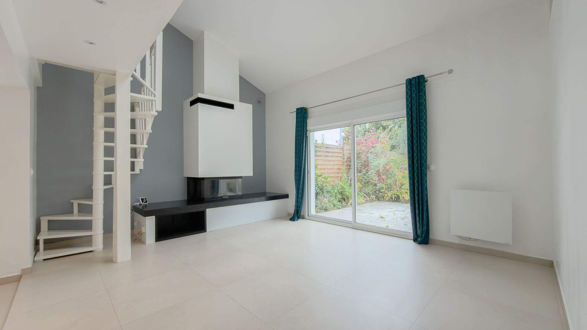 La maison comporte, au rez-de-chaussée, un séjour double avec cuisine ouverte, aménagée et équipée avec des meubles haut de gamme tout en optimisant l'espace.