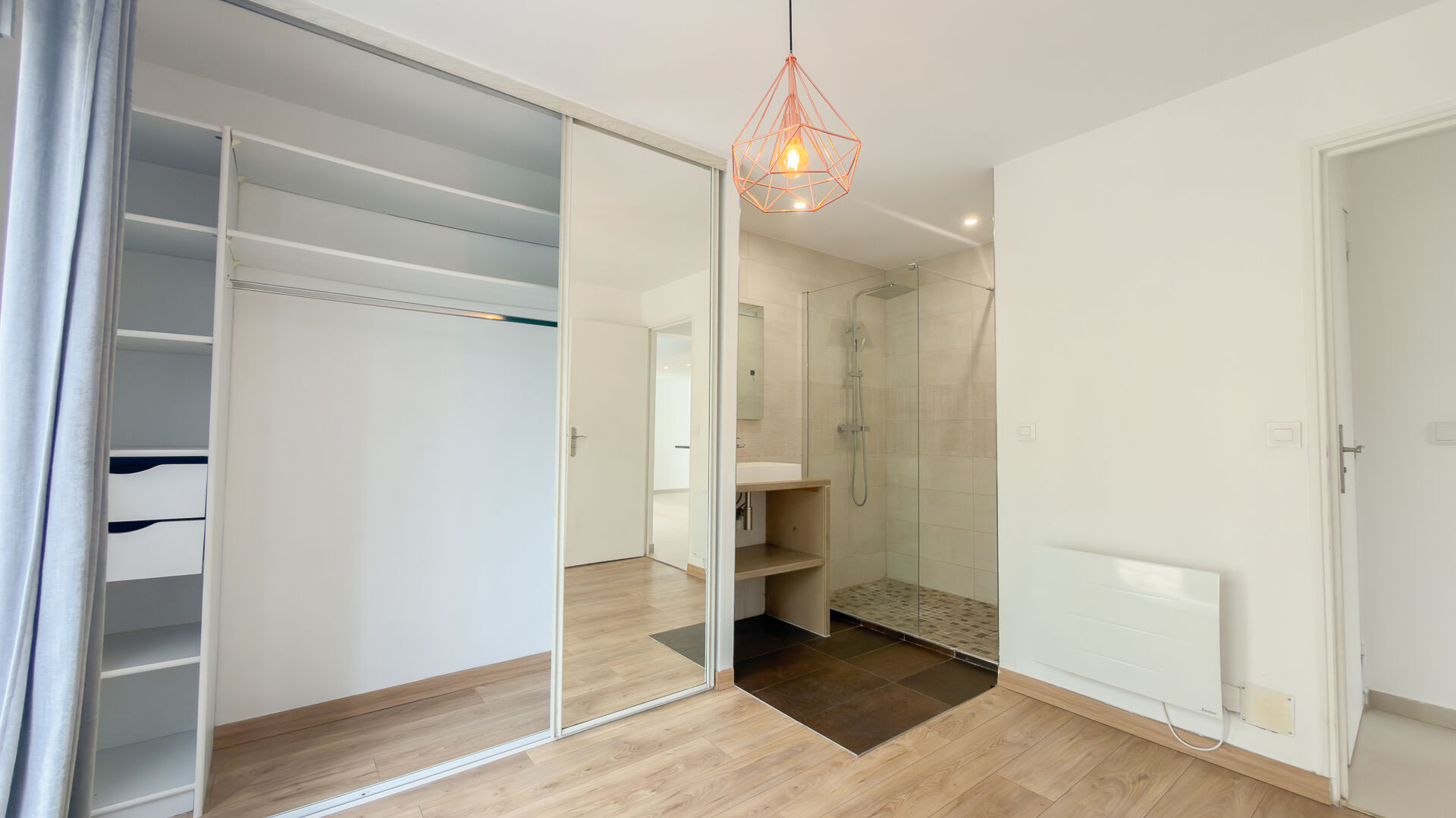 Toujours au rez-de-chaussée, une chambre avec placards et salle d'eau, des WC séparés.