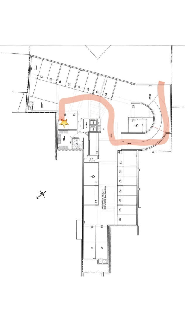 Parking situé au 1er sous-sol d'une résidence neuve, sécurisée et sous vidéosurveillance.