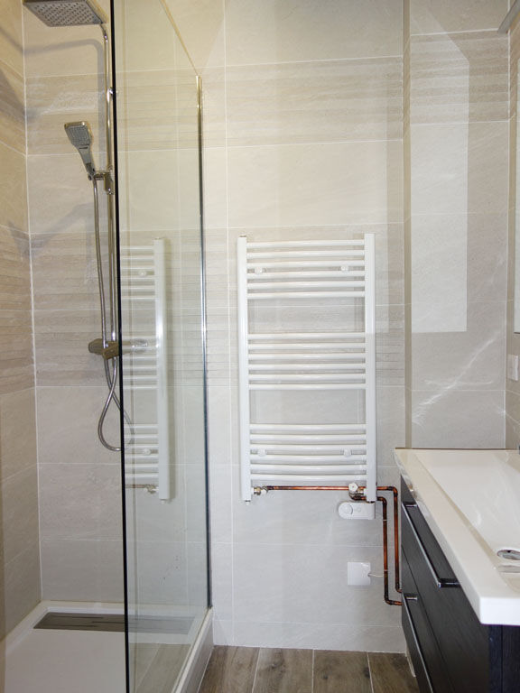 1 salle de douches avec sèche serviette