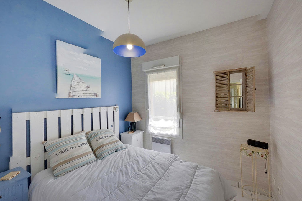 Il comprend: Entrée, salon-séjour avec accès à la terrasse, cuisine ouverte, chambre lit double (140) avec placard, une cabine avec lit superposé (2x90), salle de douches, WC, WIFI.
