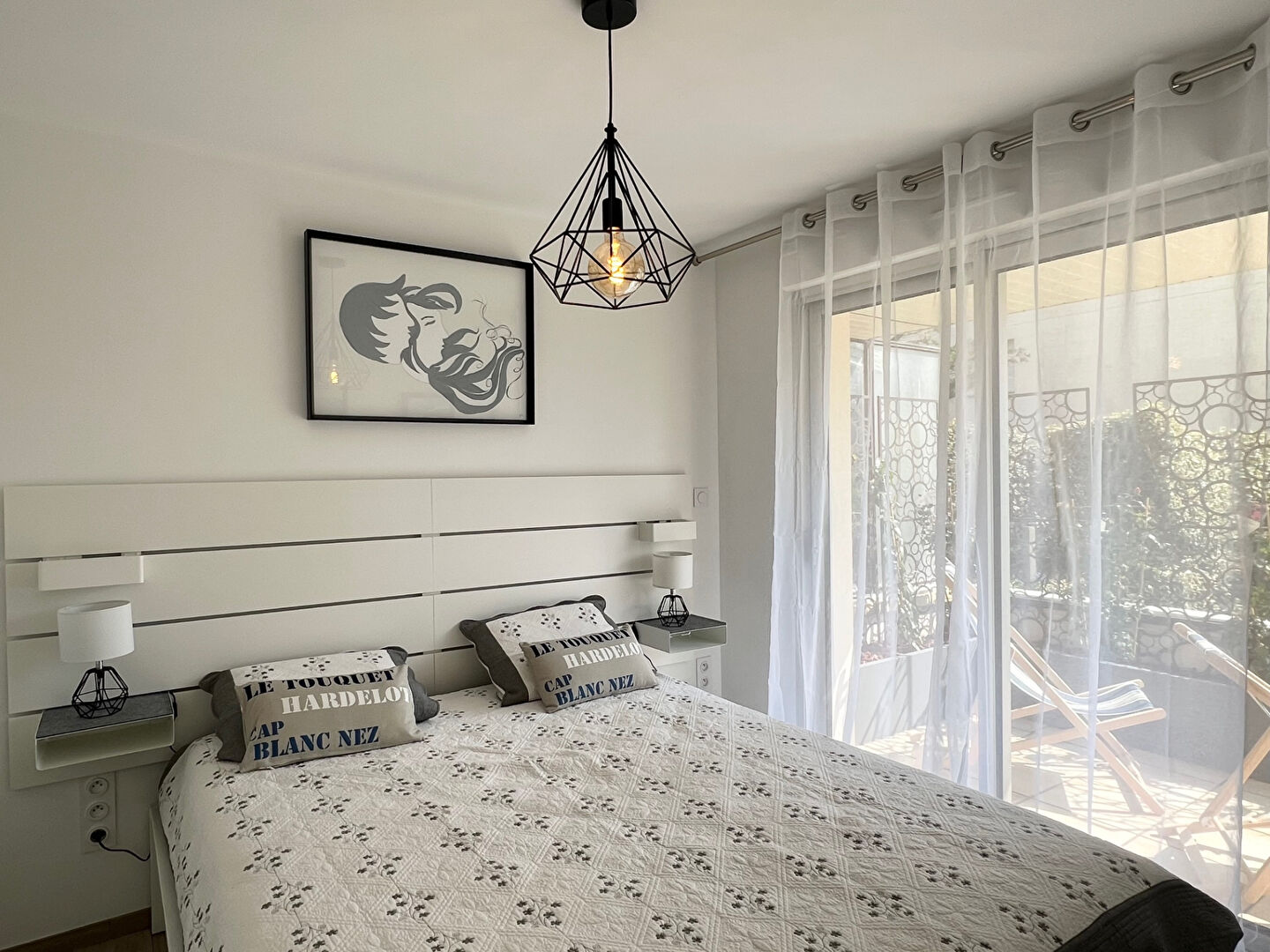 Dans le triangle d'or, appartement rénové 4 couchages, terrasse, jardin, parking et Wifi, comprenant :